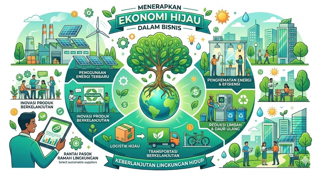 Prinsip ekonomi hijau mendorong bisnis untuk meninggalkan model ekonomi linier “ambil-buat-buang” dan beralih ke ekonomi sirkular. Dalam operasionalnya, perusahaan perlu memastikan bahwa setiap limbah yang dihasilkan dapat dikelola kembali, didaur ulang, atau dikomposkan. Pengurangan penggunaan plastik sekali pakai di lingkungan kantor serta penerapan kebijakan paperless melalui digitalisasi dokumen adalah langkah praktis yang memberikan dampak besar. Dengan merancang produk yang tahan lama dan mudah didaur ulang, bisnis tidak hanya mengurangi beban pada tempat pembuangan akhir, tetapi juga menciptakan nilai tambah bagi konsumen yang semakin sadar akan isu lingkungan.