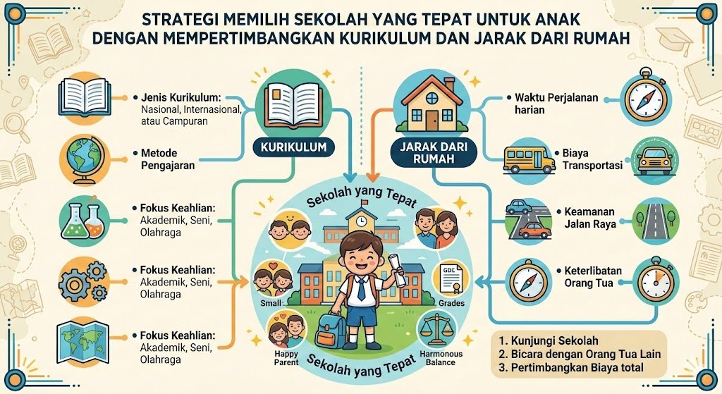 Memilih institusi pendidikan untuk buah hati bukan sekadar urusan mendaftarkan nama di sekolah yang paling populer di kota Anda. Ini adalah keputusan investasi jangka panjang yang akan membentuk karakter, pola pikir, hingga kesejahteraan emosional anak. Sebagai orang tua, Anda seringkali dihadapkan pada dilema antara mengejar kualitas akademis yang prestisius atau memprioritaskan kenyamanan logistik harian. Dua faktor utama yang kerap menjadi batu penjuru dalam pengambilan keputusan ini adalah kurikulum yang diterapkan dan jarak sekolah dari rumah.